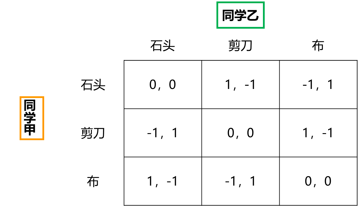 上述矩阵,叫做支付矩阵