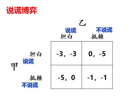Ø 如果一人坦白招供,另一人抵赖,则坦白的当即释放,抵赖的判5年Ø 如果两人都拒不认罪,警方因证据不足,只能因私闯民宅判每人1年