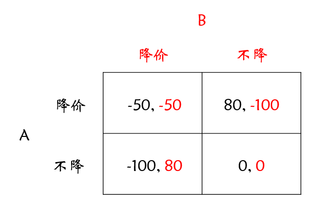 对卖家来说,最好的是大家都不降价。双方价格持续下降,以蒙牛和伊利为例。如果伊利卖4.5,蒙牛卖4.6,随后蒙牛降价4.5
