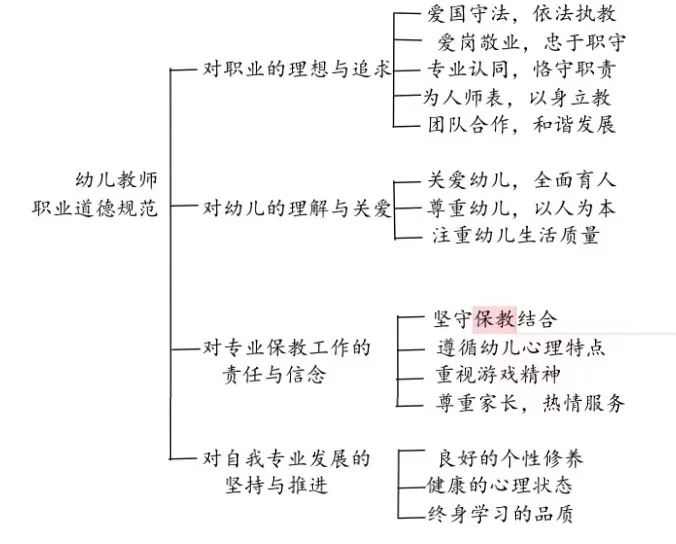 主要内容:理解对职业的理想与追求;懂得对幼儿的理解与关爱;保持对保教工作的责任与信念、坚持对专业的发展推进。
