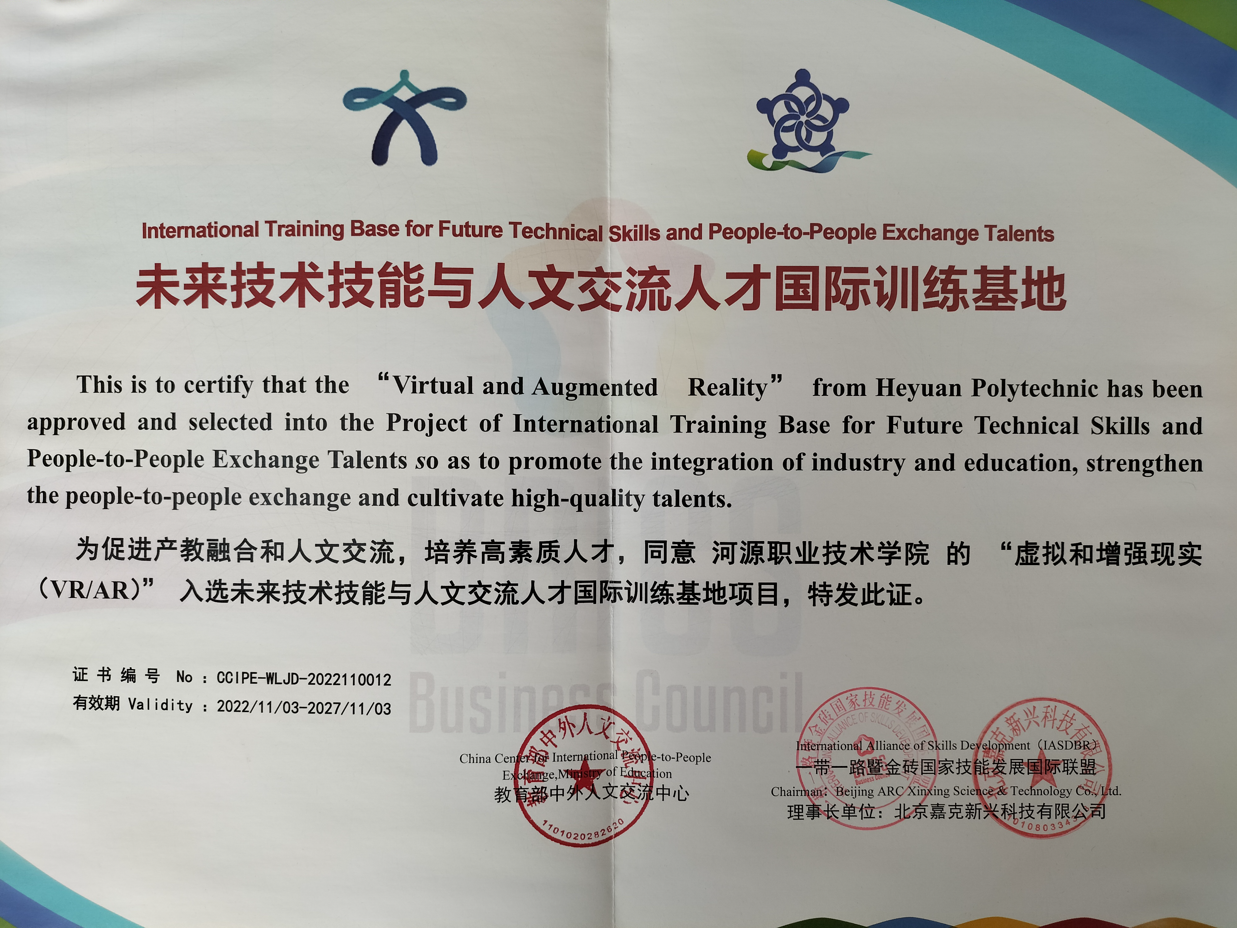 ● “虚拟和增强现实(VR、AR)”未来技术技能与人文交流人才国际训练基地