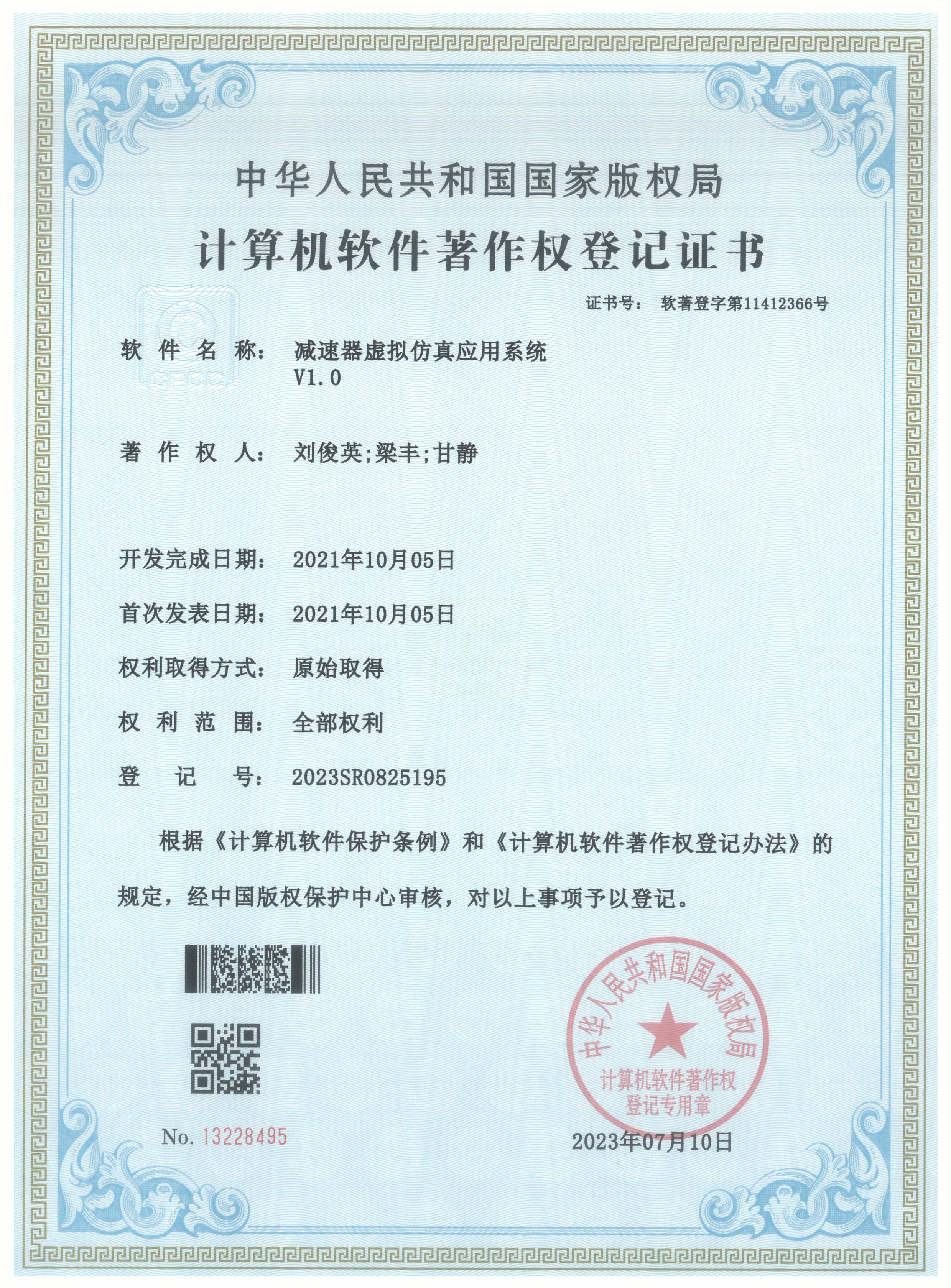 9 | 减速器虚拟仿真应用系统V1.0 | 2021年10月5日 | 2023SR0825195 |