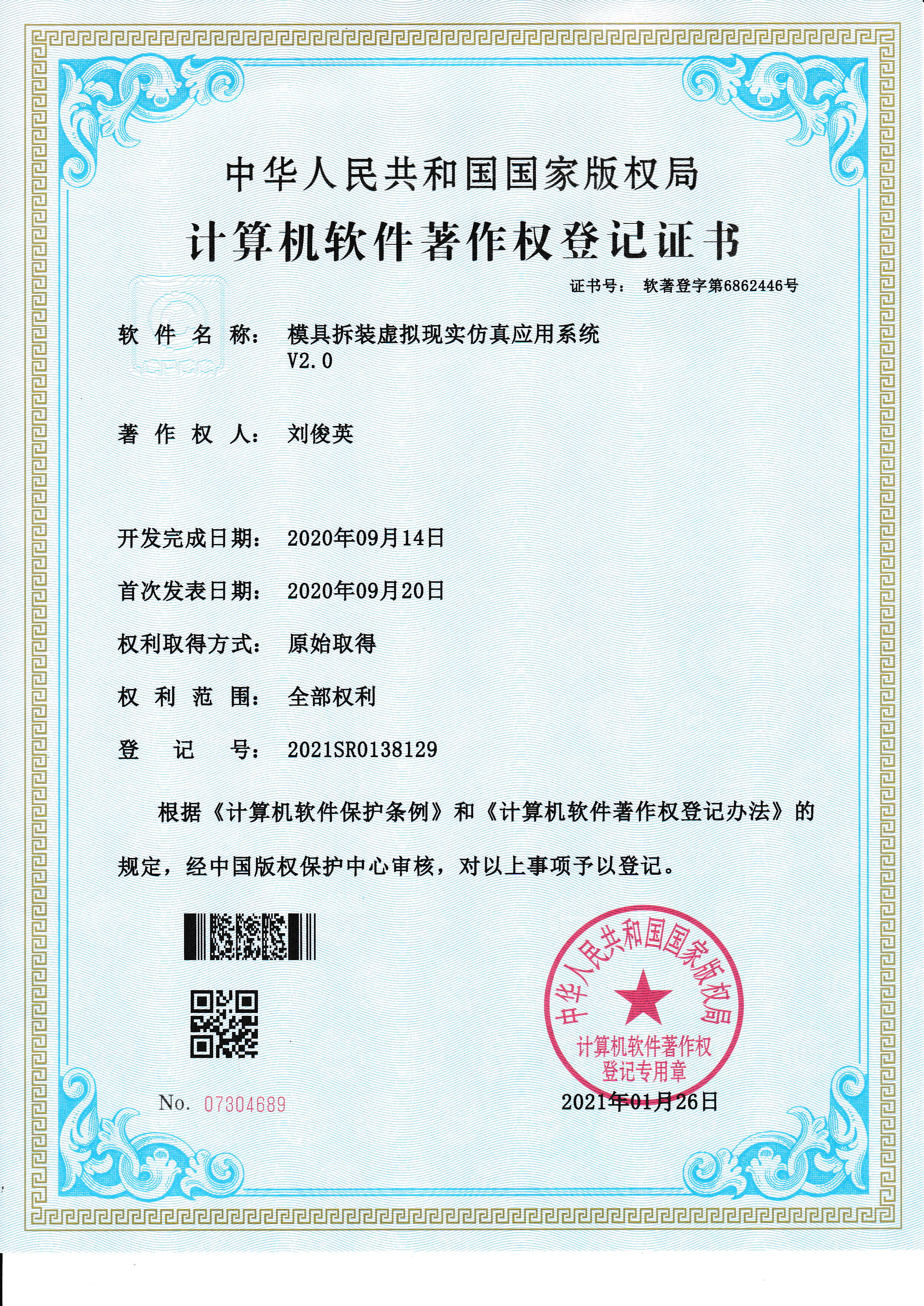 2 | 模具拆装虚拟仿真应用系统V2.0 | 2020年9月14日 | 2021SR0138129 |