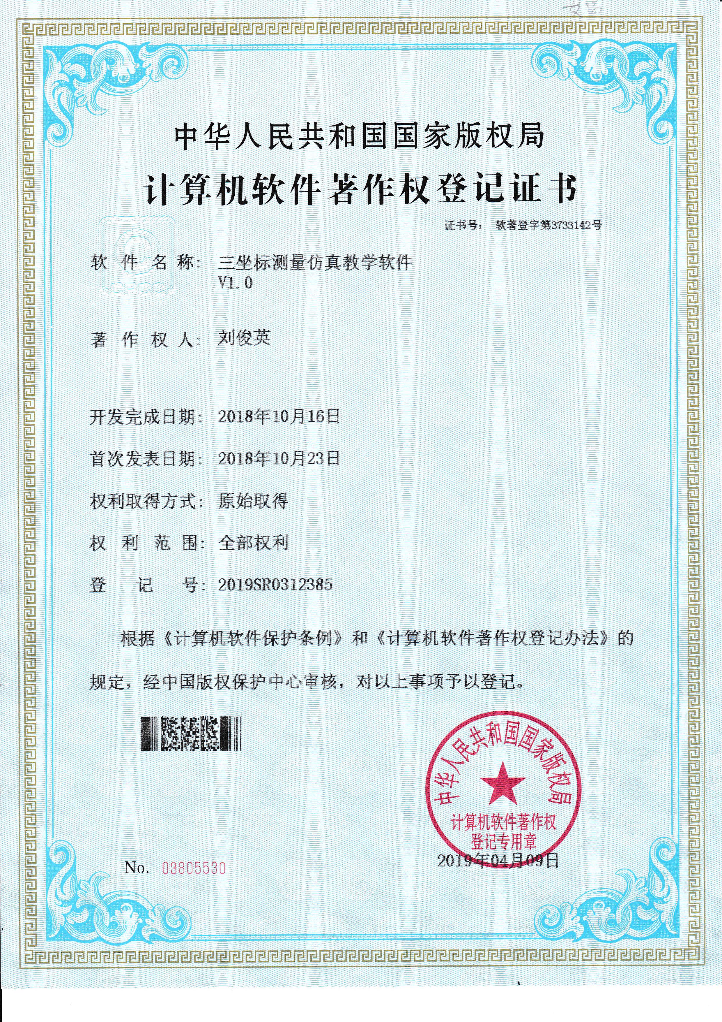 3 | 三坐标测量仿真教学软件V1.0 | 2018年10月16日 | 2019SR0312385 |
