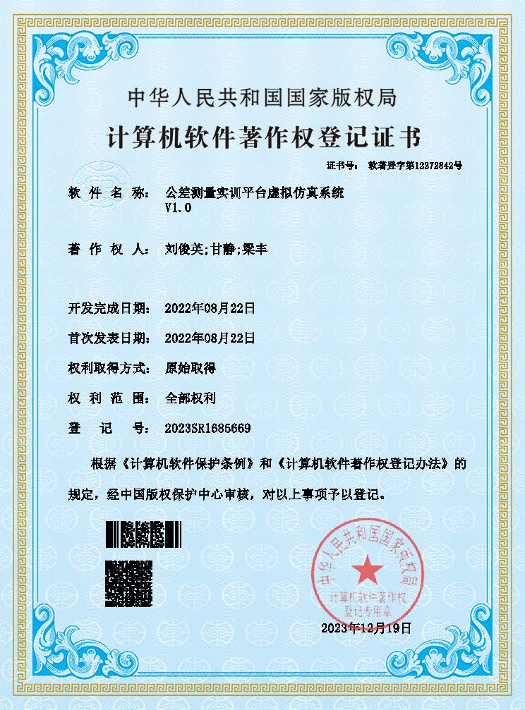 6 | 公差测量实训平台虚拟仿真系统V1.0 | 2022年8月22日 | 2023SR1685669 |