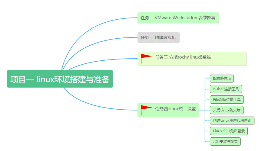 本项目思维导图如下,有红旗标注为重点掌握: