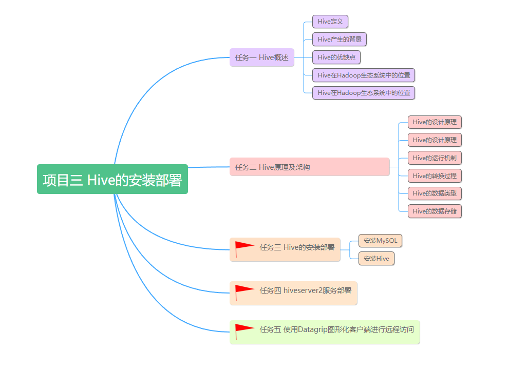 本项目思维导图如下,有红旗标注为重点掌握: