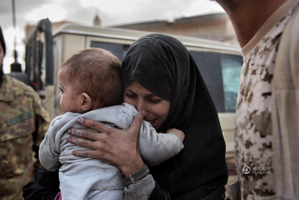 (We Are Not Taking Any Prisoners)。利比亚士兵与“伊斯兰国”武装交战,将一对据称是“伊斯兰国”家属的母子带出Al Jiza战区。