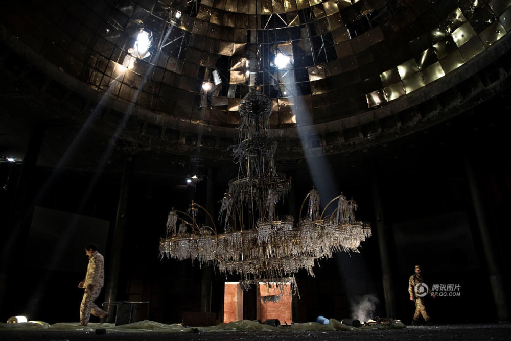 (We Are Not Taking Any Prisoners)。布基纳法索首都瓦加杜古,利比亚政府军士兵走过瓦加杜古国会大厦内的吊灯。