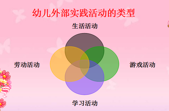 常用的分类方法是按照幼儿一日活动的内容,将幼儿的外部实践活动分为四类,即幼儿的生活活动、游戏活动、学习活动和劳动活动。