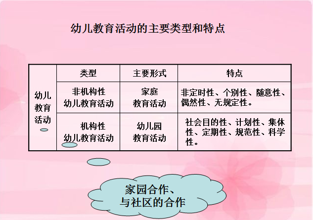 幼儿教育活动通常可分为非机构性教育活动和机构性教育活动两大类。