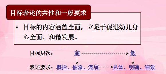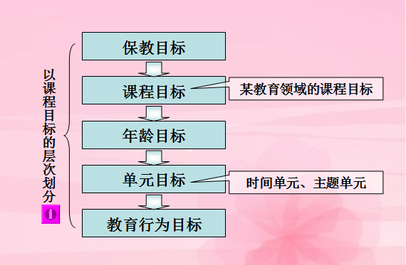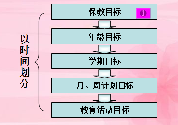 (1)以时间维度来划分,可将幼儿园教育活动的目标分为五个层次: