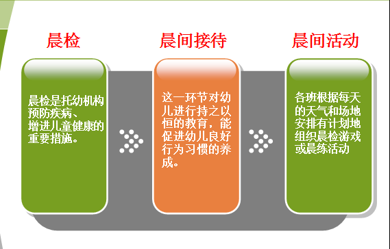 晨检是托幼机构预防疾病、增进幼儿健康的重要措施。《幼儿园工作规程》规定,“幼儿园应当建立卫生消毒、晨检、午检制度和病儿隔离制度”,《托儿所幼儿园卫生保健管理办法》也规定,“坚持晨检及全日健康观察”,都以法规的形式突出了晨检的重要作用。