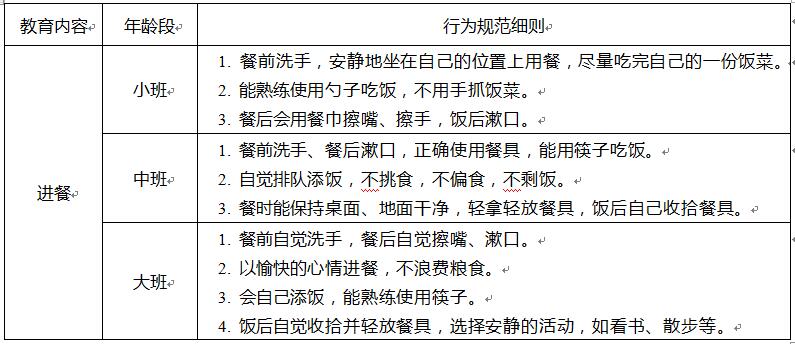 在进餐过程中,对小班幼儿主要应注意培养他们独立进餐的习惯和进餐的技能。对中、大班幼儿则注重进餐习惯的养成。
