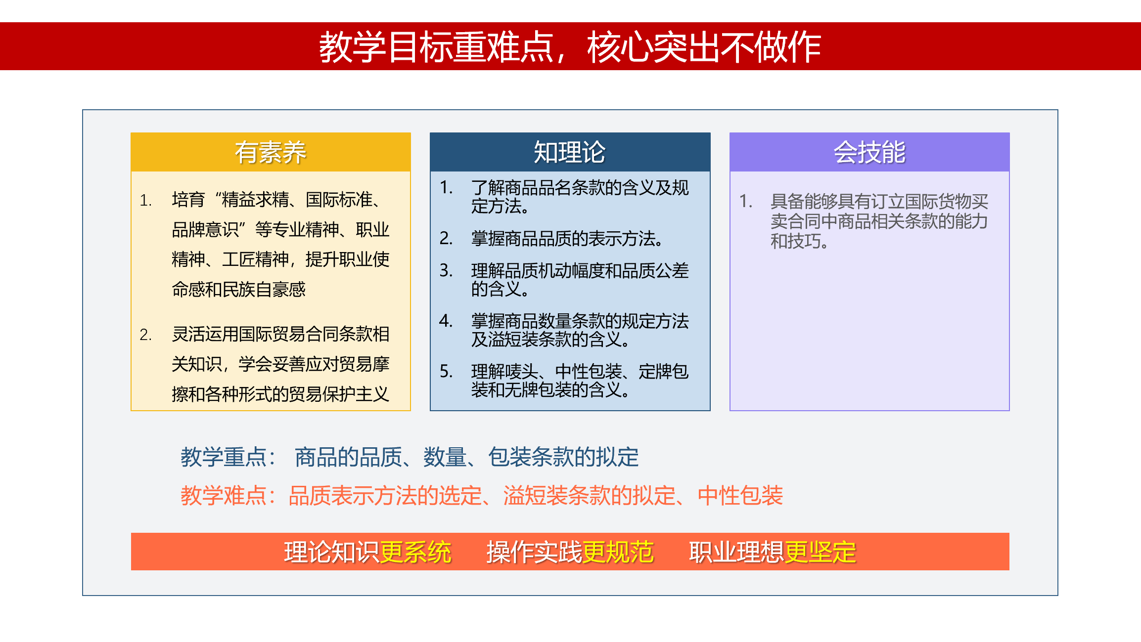 1.具备能够具有订立国际货物买卖合同中商品相关条款的能力和技巧。