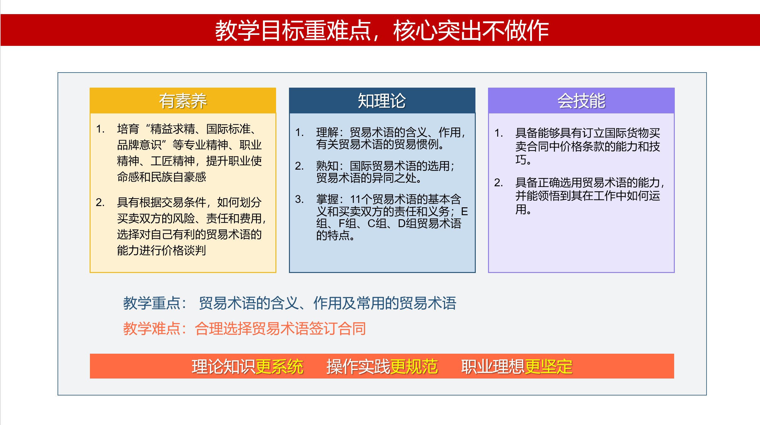 2.具备正确选用贸易术语的能力,并能领悟到其在工作中如何运用。