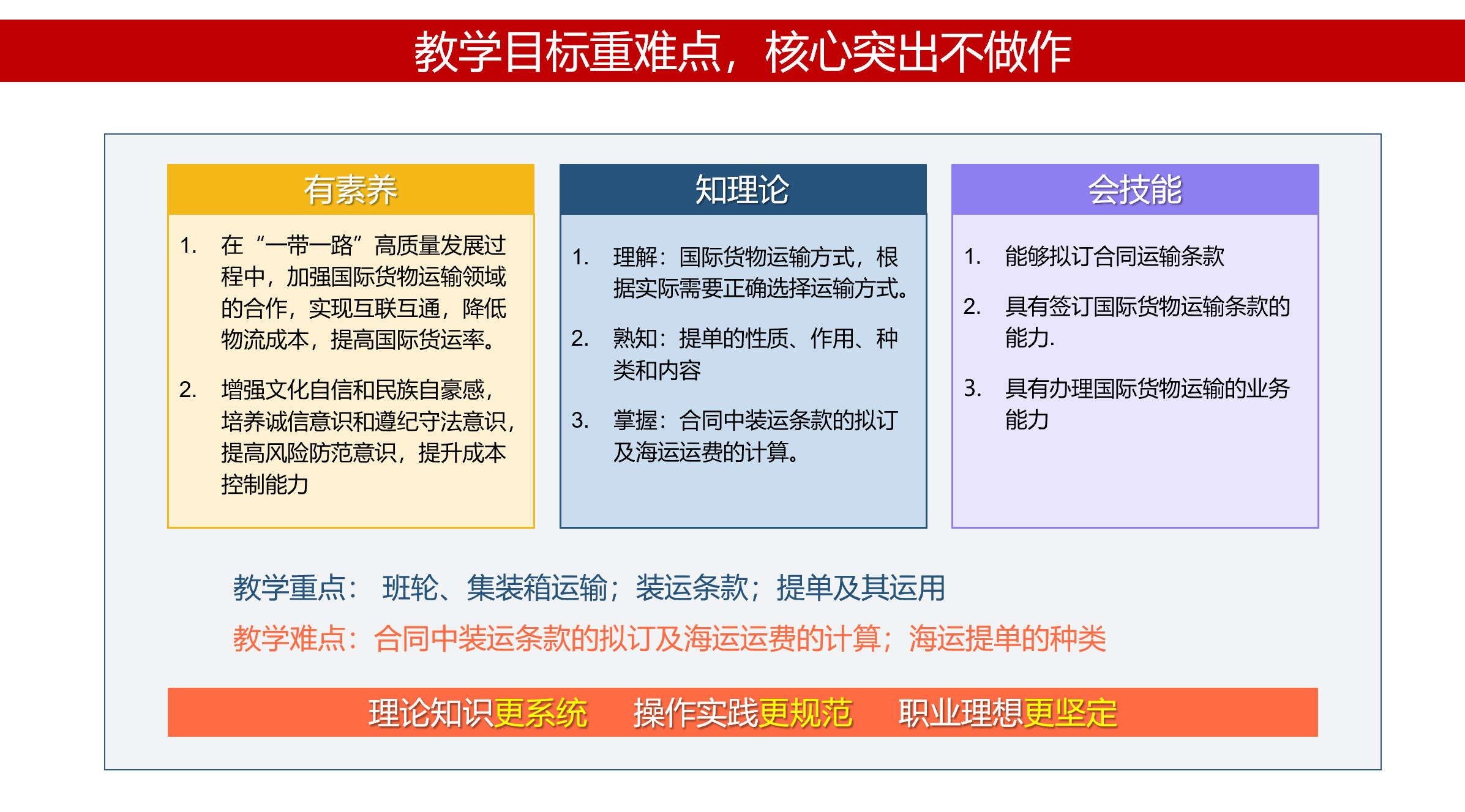 1.理解:国际货物运输方式,根据实际需要正确选择运输方式。