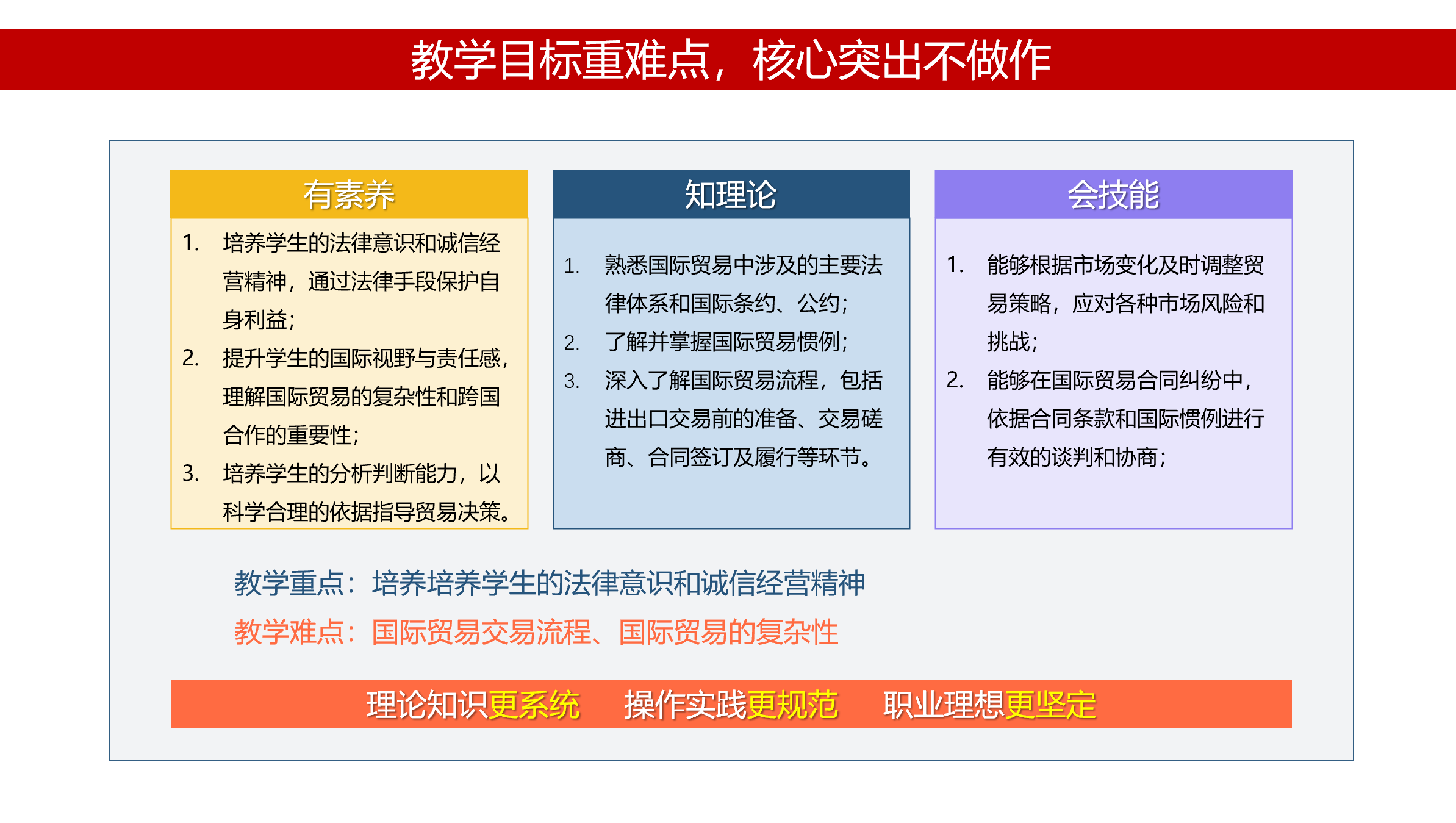 3.培养学生的分析判断能力,以科学合理的依据指导贸易决策。