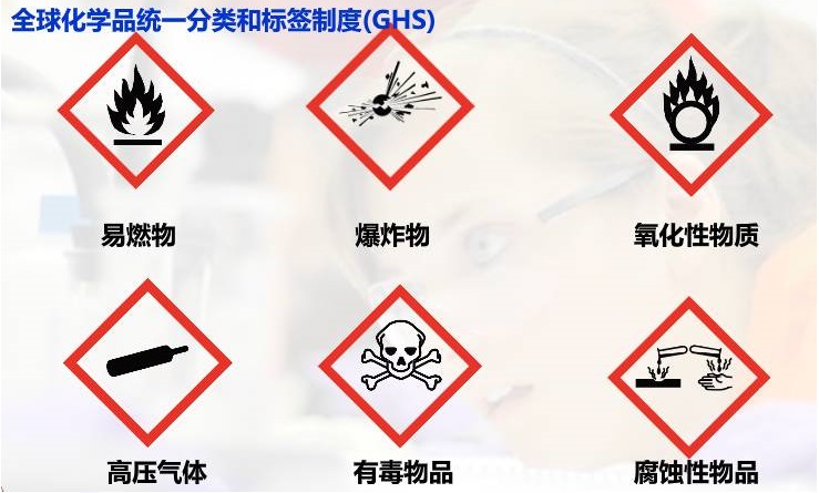 使用前仔细阅读化学品标识,使用正确的溶剂和反应物。化学品标识主要有几种:易燃物,爆炸物,氧化性物质,有毒物质,腐蚀性物品,高压气体等。标识如下。