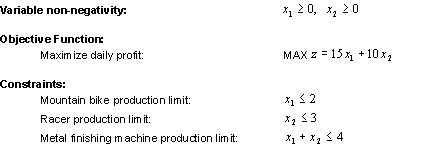 则\mathbf A=\begin{pmatrix} 30 & 20 & 1 & 1& 0 &0\\5&1 & 0& 0 & 1 &0\\ 1 & 0 & 0 & 0 & 0&1\end{pmatrix},\mathbf b=\begin{pmatrix} 160\\15\\ 4\end{pmatrix},\mathbf c^\top=\begin{pmatrix} -5,-2,0,0,0,0\end{pmatrix}.