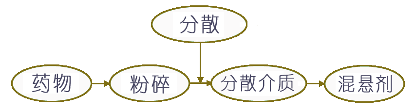 将分子或离子分散状态分散的药物溶液加入于另一分散介质中凝聚成混悬液的方法。