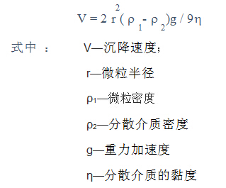 混悬剂中微粒在重力作用下发生沉降,沉降速度符合Stock’s公式。Stock’s公式是用来描述微粒沉降速度及其影响因素。公式把微粒假想成半径为r,密度为1的球体,在密度为2、黏度为的分散相中沉降。将沉降微粒的重力,浮力和阻力的根据牛顿第二定律进行化简整理后得到的就是Stock’s公式。