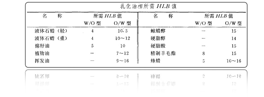 所选择的乳化剂的HLB值≈乳化油所需的HLB值
