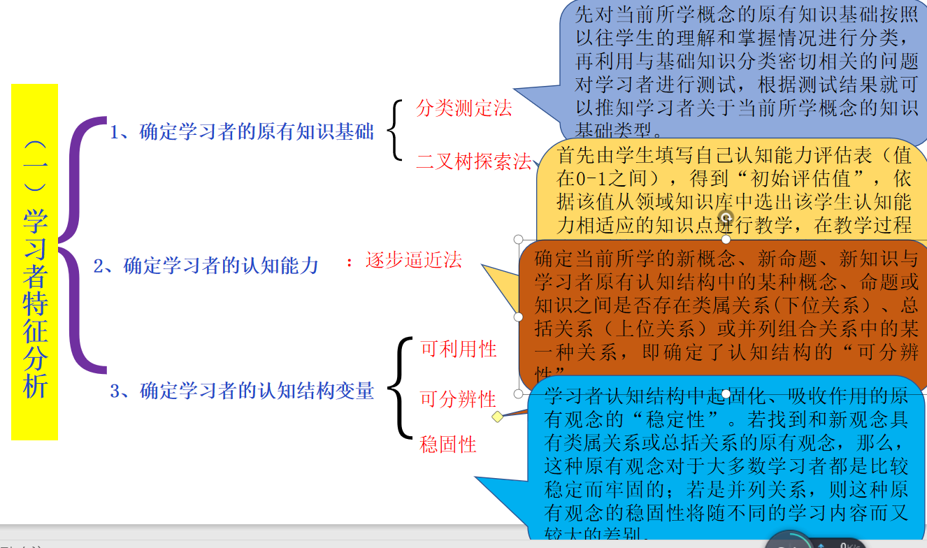 图解分析法:图解分析法是一种用直观形式揭示教学内容要素及其相互联系的内容分析方法,常用对认知教学内容的的分析。图解分析的结果是一种简明扼要、提纲挚领地从内容和逻辑上概括教学内容的一套图表或符号。