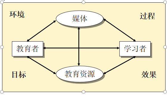 1.教育者 教育者是教育传播系统中具备教育教学活动能力的要素,是系统中教育信息的组织者、传播者和控制者,