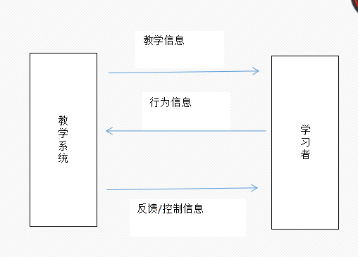首先,系统向学习者发送关于教学内容的信息,接着,系统从学习者获得反映他学习行为的信息,最后,系统再向学习者发反馈与控制信息来调整学习者的行为。图3-2-1 的教学系统是由一定的媒体环境、教学软件以及教育者构成的。在自动化教学的情况下,教育者的角色被系统的软、硬件所取代。当然。上图所反映 的是授导型教学系统的典型传播模式。此外,也有单向传播教学系统和多向传播的学习系统。