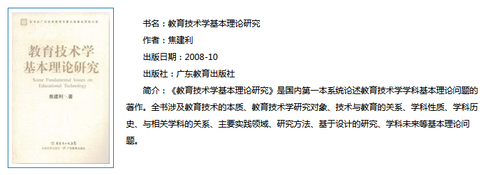 教育技术学学科建设的发展。1983年至1986年先后有华南师大、华东师大、西北师大、东北师大、北京师大、南京师大等一批院校经批准设立了电化教育(教育技术)系,还有反映教育技术的专著、译著和教材也相继问世。如《教育技术学导论》、《教育传播学》、《教育设计》、《电化教育管理》等著作概括了全国教育技术工作者的研究成果,初步形成了学科理论体系。在实践上,应用教育技术学的有关理论进行的课程开发、多媒体教学设计等亦取得了不少成果。