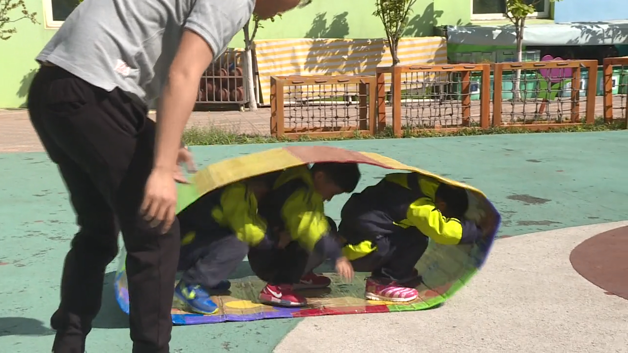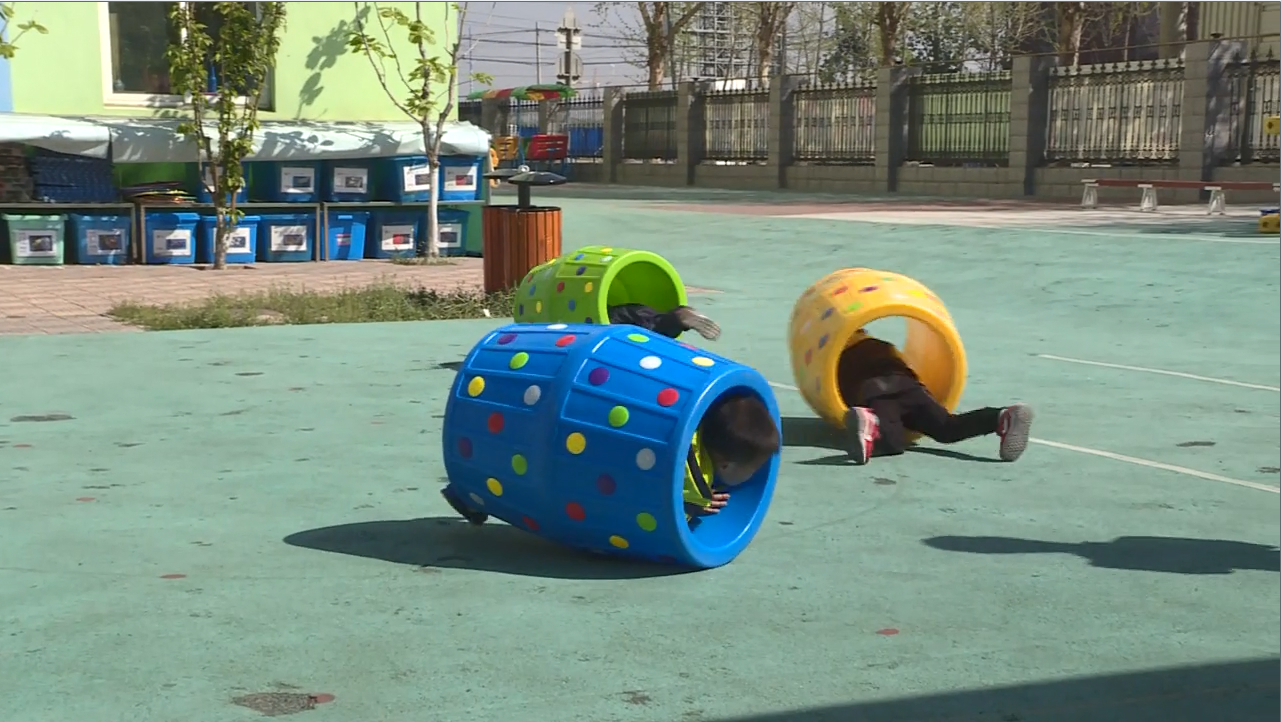 选择宽阔的地进行游戏,在幼儿翻滚过程中注意引导幼儿正确的方向,以免幼儿互相碰撞,偏离重点线路。选择时尽量选取塑料滚筒,以免幼儿被伤到。
