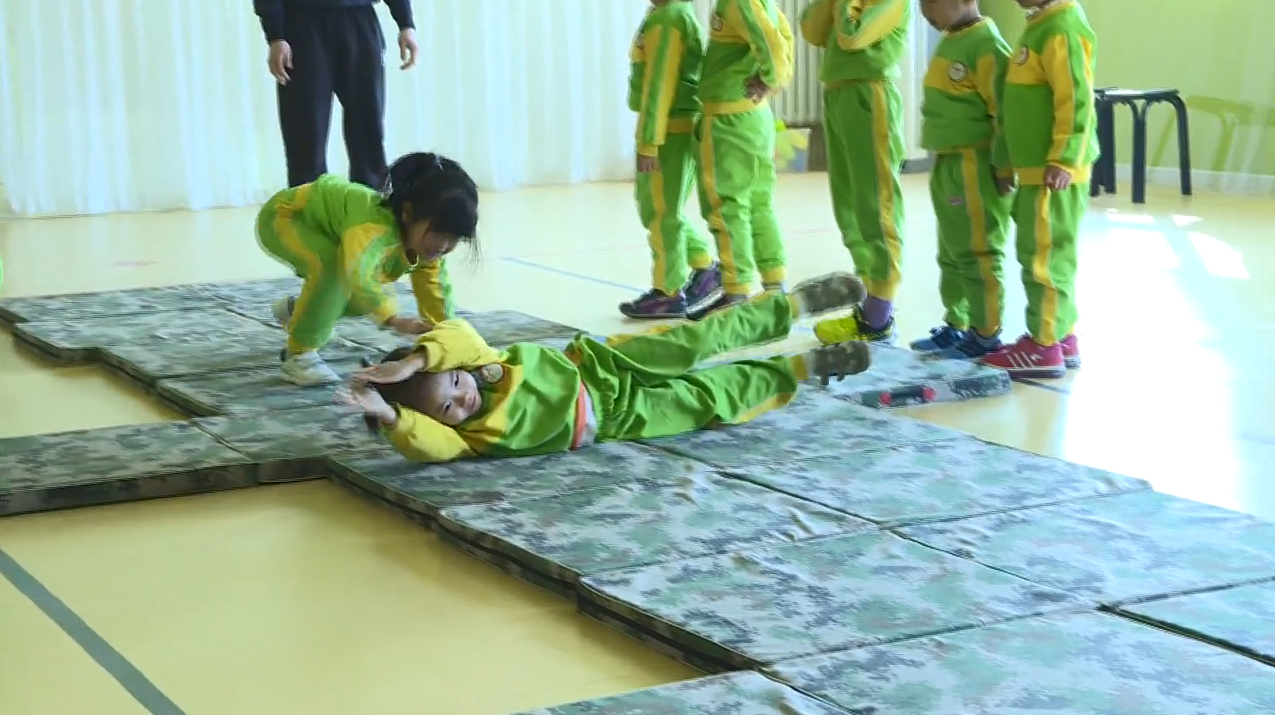 选择宽阔的场地进行游戏,在幼儿翻滚过程中注意引导幼儿正确的方向,以免幼儿脱离垫子。