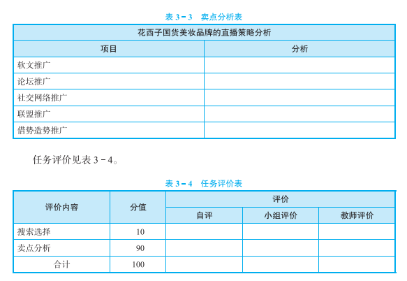 请在上网搜索你熟悉的国货美妆品牌的推广策略,并完成下表。