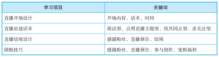 在前面的任务中王新己经学会了在直播中与买家的互动方式,那这些互动方式在开播的时候应该如何应用呢?王新还是不太了解,因此工作室老师给王新布置的任务是完成一场助农直播活动的开播话术和结尾话术的练习,为了更好地完成老师交代的任务,王新为自己制订了学习单用以梳理所学知识。