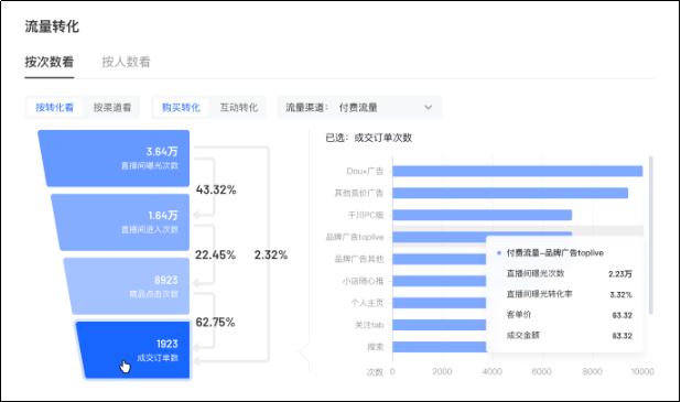 其实销售额达不到,主要有两个问题, 第一个是直播不活跃留不住人,这里主要看下互动率,第二个是对商品不感兴趣,不愿意进行购买,主要看下点击转化率、购买转化率。