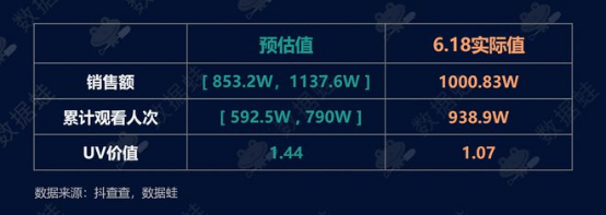 观察到6月13日进行的直播,累计观看人次达到了395W,本身热度比较高,到618当天累计观察人次,估计会有[0.5,1]倍的提升,因此累计观看人次预估为[592.5W,790W]。
