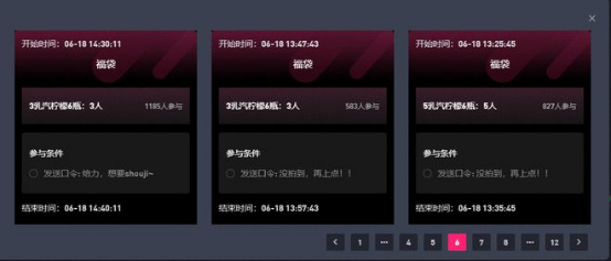 这里我们对比了两场直播的送福袋的次数,在直播时长18小时期间,6月9日送福袋比6月6日的少了50%。
