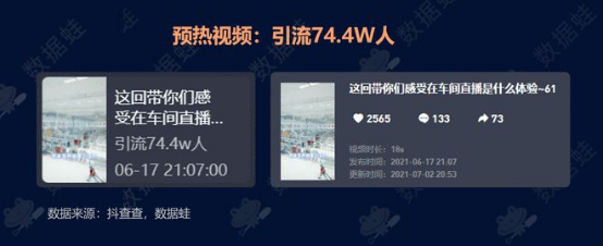 在6月17日晚上21点,伊利发布了一个引流视频,通过预告会在车间直播吸引用户,最后效果还是不错的,引流了74.4W人。