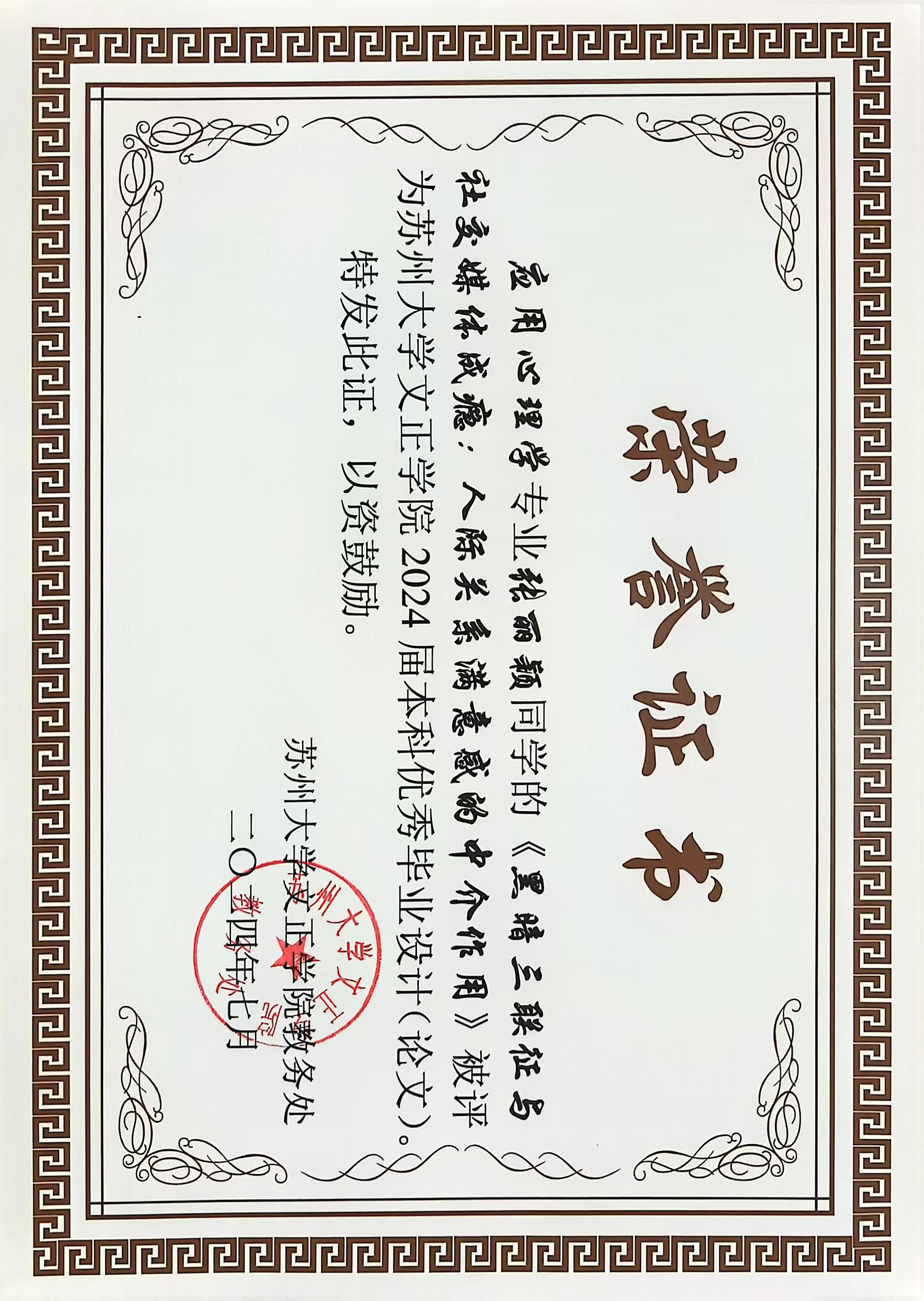 2024年7月优秀本科毕业论文