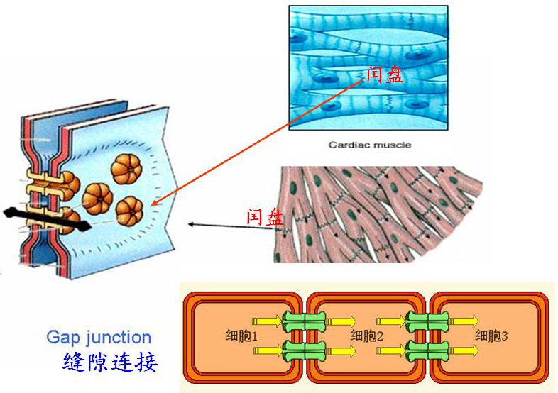 (2)心肌在功能上是一个合胞体。心肌细胞可分支,细胞间呈串联排列;两细胞在闰盘处的细胞膜紧密相贴,该处的电阻很低,能允许离子相对自由扩散,使动作电位很容易从一个心肌细胞传导到另一个心肌细胞。