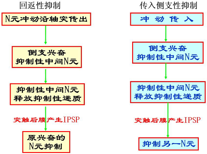 这种抑制是突触后膜出现抑制性突触后电位引起的,故称为突触后抑制,可分为传入侧枝性抑制和回返性抑制。