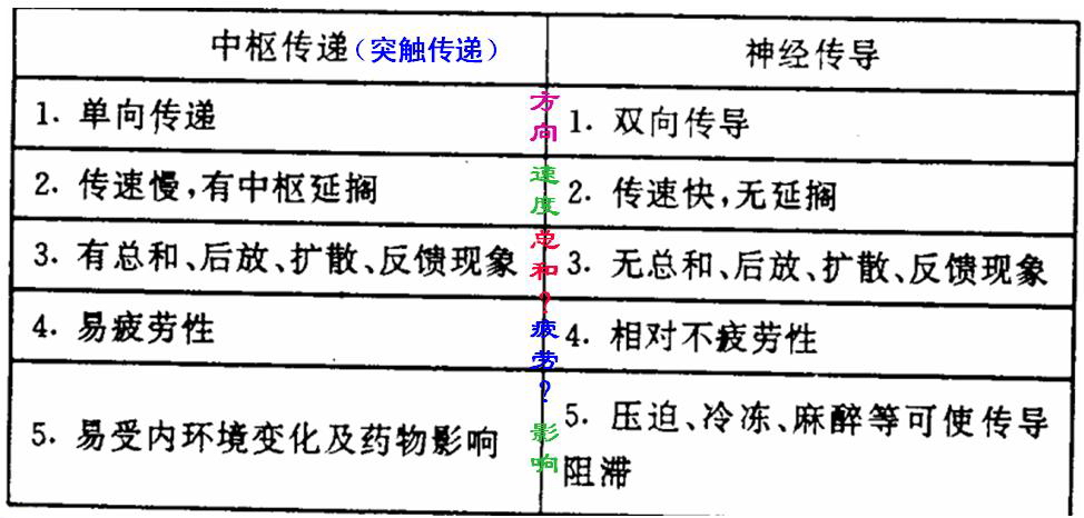 突触传递特征有单向传递、突触延搁、总和、兴奋节律的改变、对内环境变化敏感和易疲劳等特点。