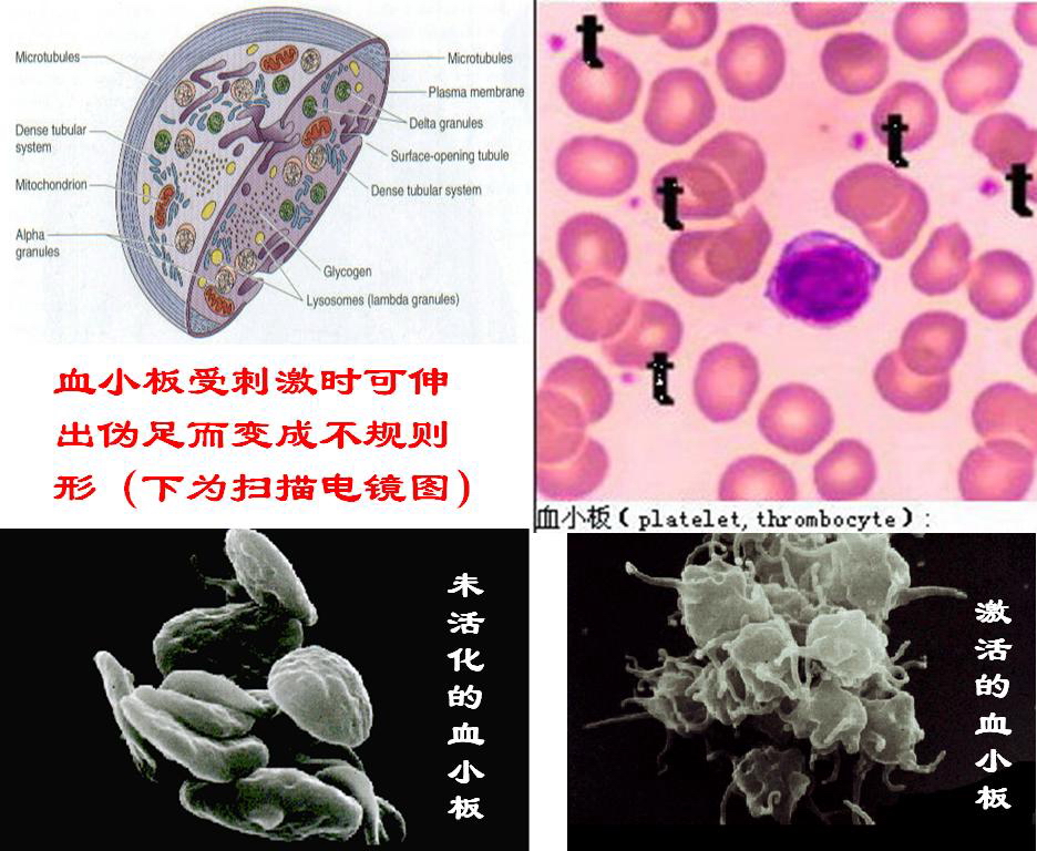 血小板的激活立即引起血小板内一系列生化反应,同时也使血小板失去盘状外形,出现粘附变形。