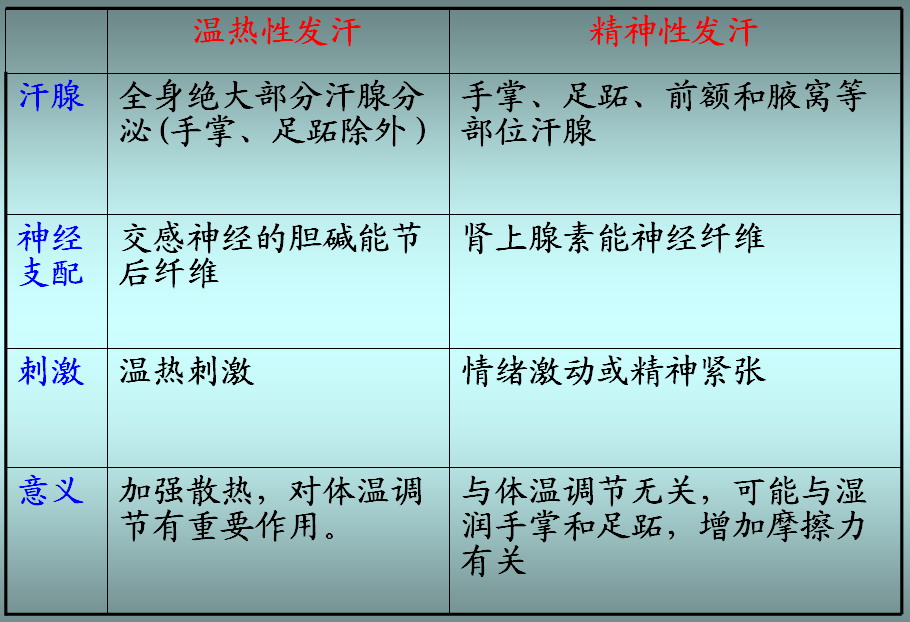 汗液蒸发可有效地带走热量。因为发汗是可以感觉到的, 所以又称可感蒸发(sendbie evaporation)。发汗是高温环境下机体主要的散热方式。
