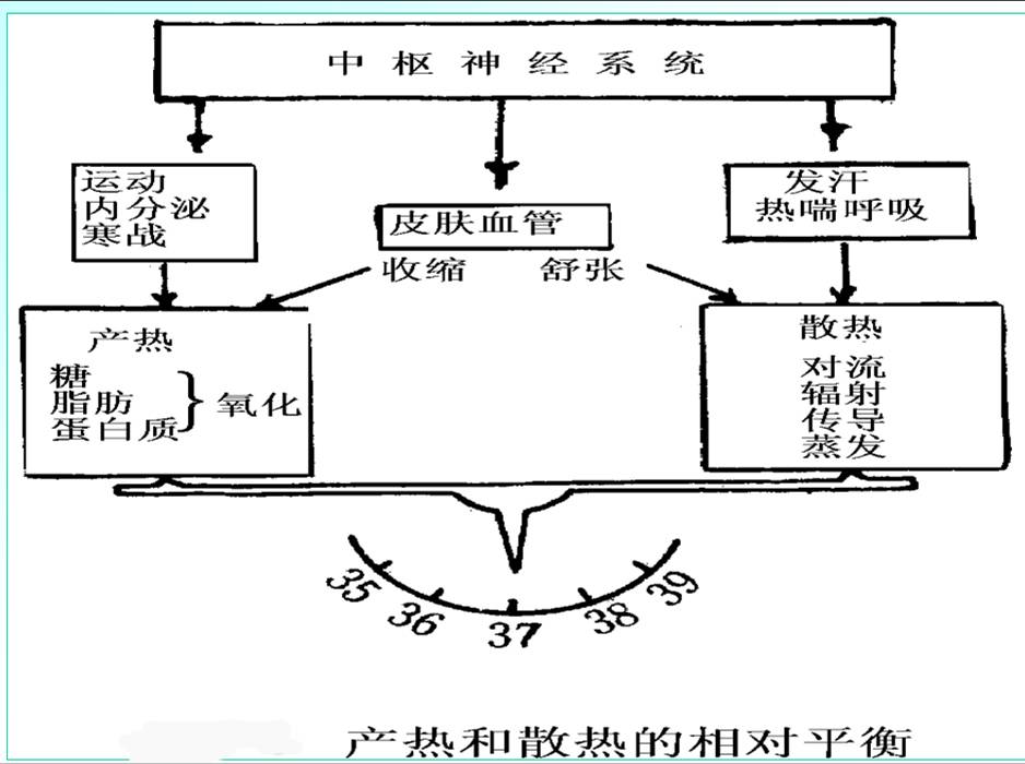 人和高等动物机体都具有一定的温度, 这就是体温。人和高等动物的体核温度是相对稳定的, 故称恒温动物(horneothermic animal)。而低等动物, 如爬虫类、两栖类, 其体核温度则随着环境温度的变化而变化, 因而称为变温动物(poikilothermic animal)。正常的体温是机体进行新陈代谢和生命活动的必要条件。