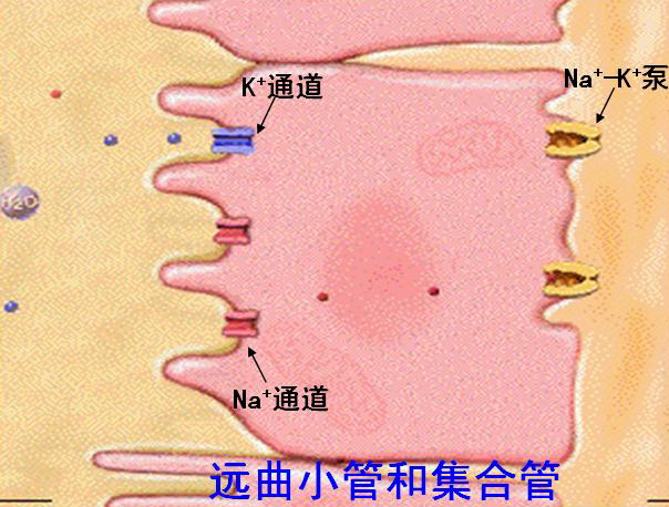 ③远曲小管、集合管除Na+-H+交换外,还有Na+-K+交换,两者间存在着竞争性抑制。