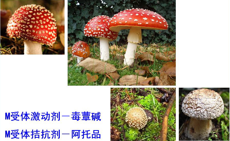 与乙酰胆碱相结合产生的效应称为毒蕈碱样作用(M样作用)。阿托品是M型受体阻断剂。M型受体可分为M1至M5五种亚型。