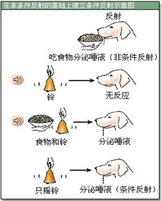 非条件反射是指出生后无需训练就具有的反射,它是生来就具备的,有着固定的反射弧。这类反射能使机体初步适应环境,对机体生存和种系生存有重要生理意义。条件反射是指在出生后通过训练而形成的反射。它是在非条件反射基础上建立起来的一种特定的反射活动,可以形成,也能消退,数量可以不断增加。条件反射的建立扩大了机体的反应范围,较非条件反射有更大的灵活性,更能精确和完善地适应复杂变化的生活环境。在机体一生中,条件反射起着主导作用。人类的条件反射主要是大脑皮层的功能。