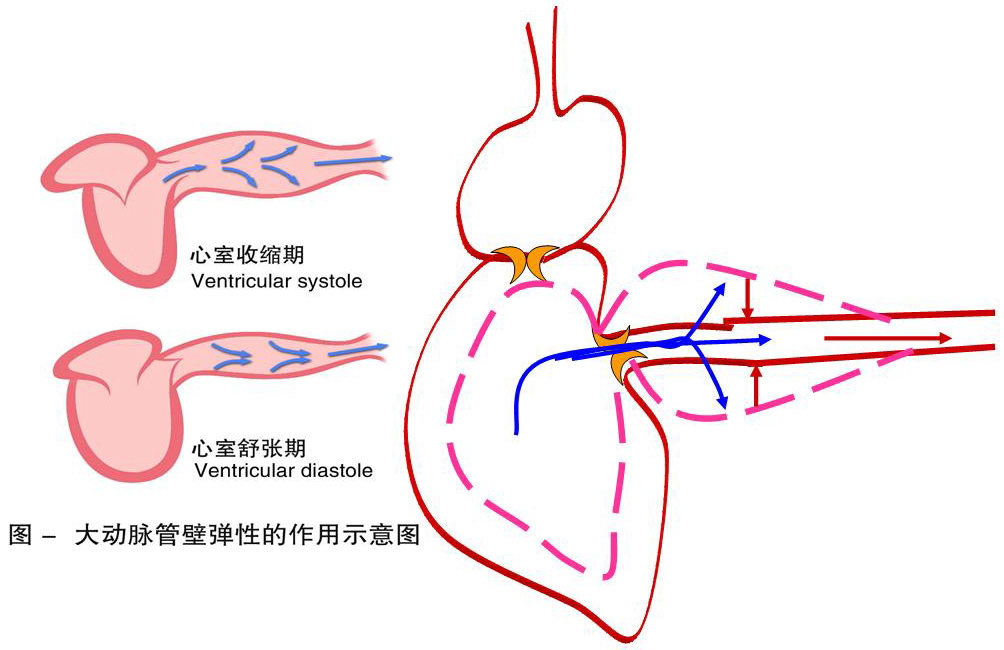 在心室收缩时,主动脉及大动脉弹性扩张,使收缩压不致太高,在心室舒张时,主动脉及大动脉弹性回缩,维持舒张压不致太低。当老年人动脉硬化,弹性减弱时,脉压显著加大。